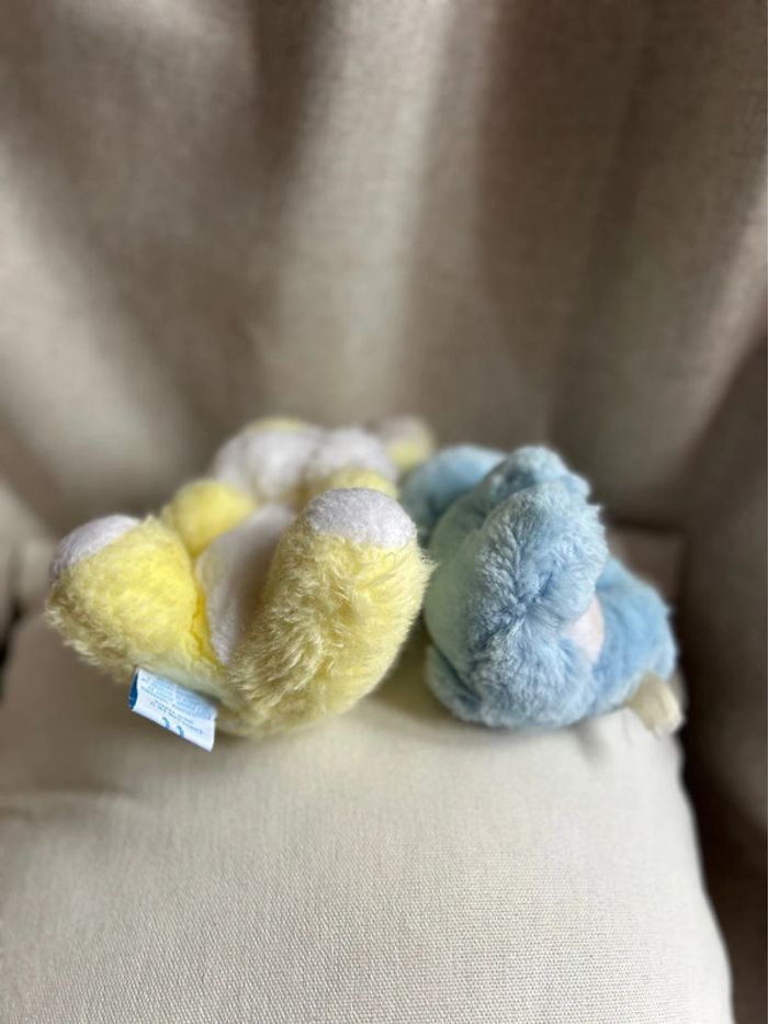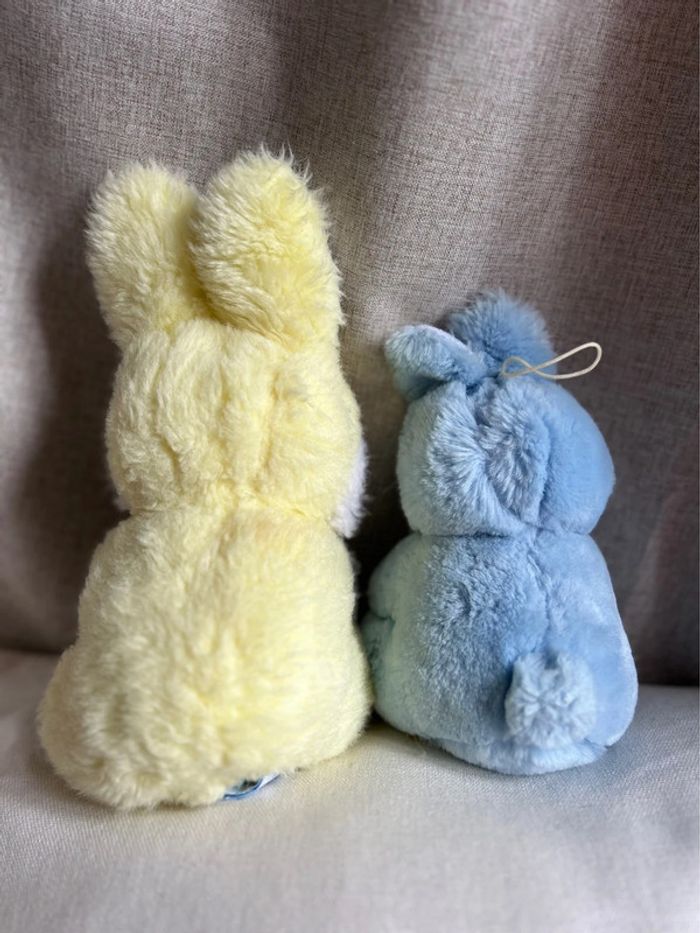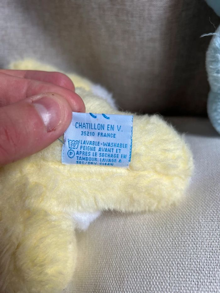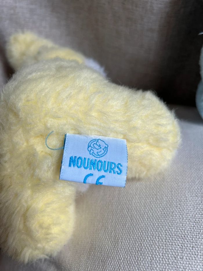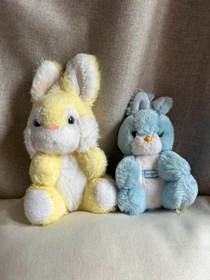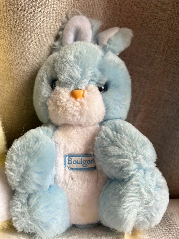 Peluches lapin jaune et bleu 2 peluches lapin type doudou marque Nounours 🧸 et Boulgom Bon état