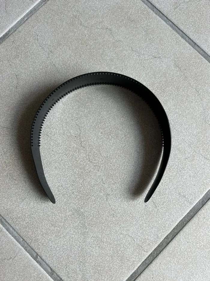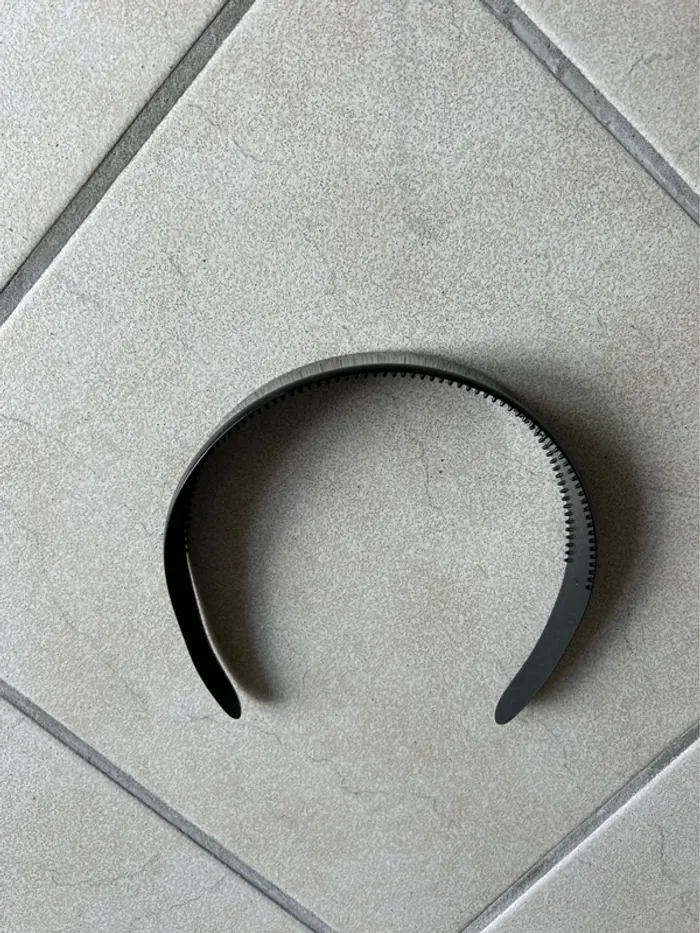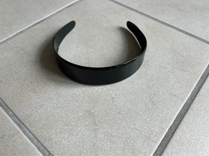 Serre-tête simple noir en plastique Serre-tête simple de couleur noire. Il est en plastique et a des dents à l'intérieur pour un bon maintien dans les cheveux. Il est en excellent état. C'est un accessoire basique et pratique pour dégager le visage. Coloris : Noir Matière : Plastique État : excellent état N'hésitez pas si vous avez des questions !