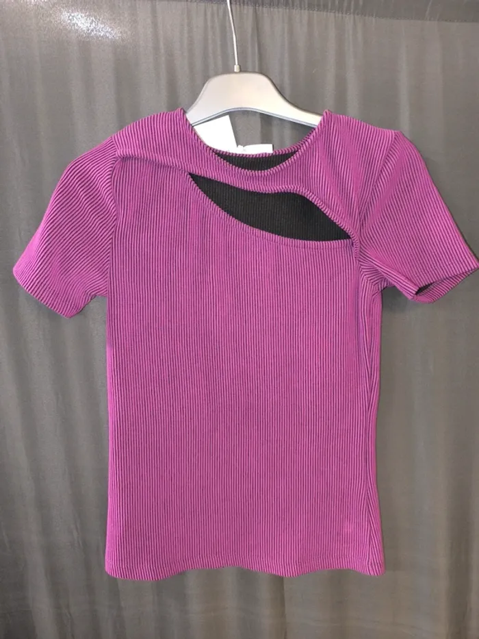 haut violet et noir MC femme S camaieu