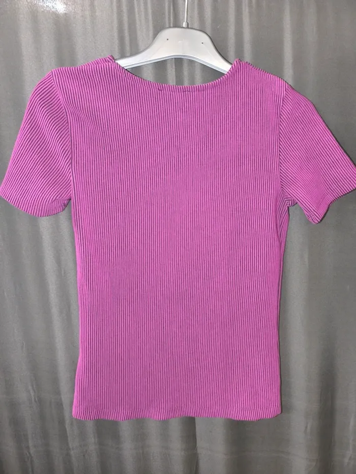 339673 haut violet et noir MC femme S camaieu - photo numéro 2