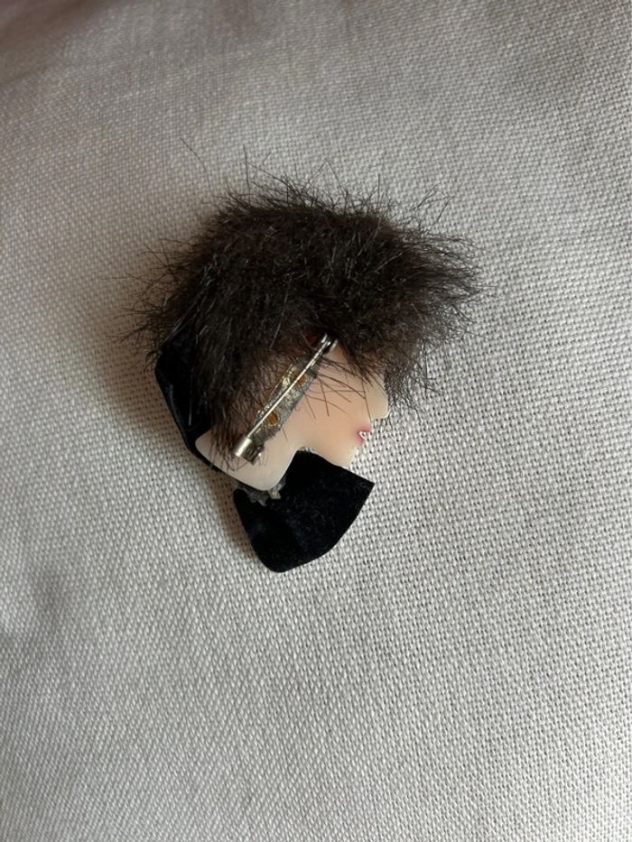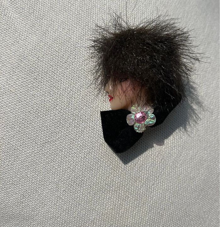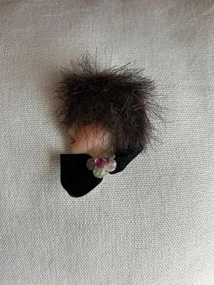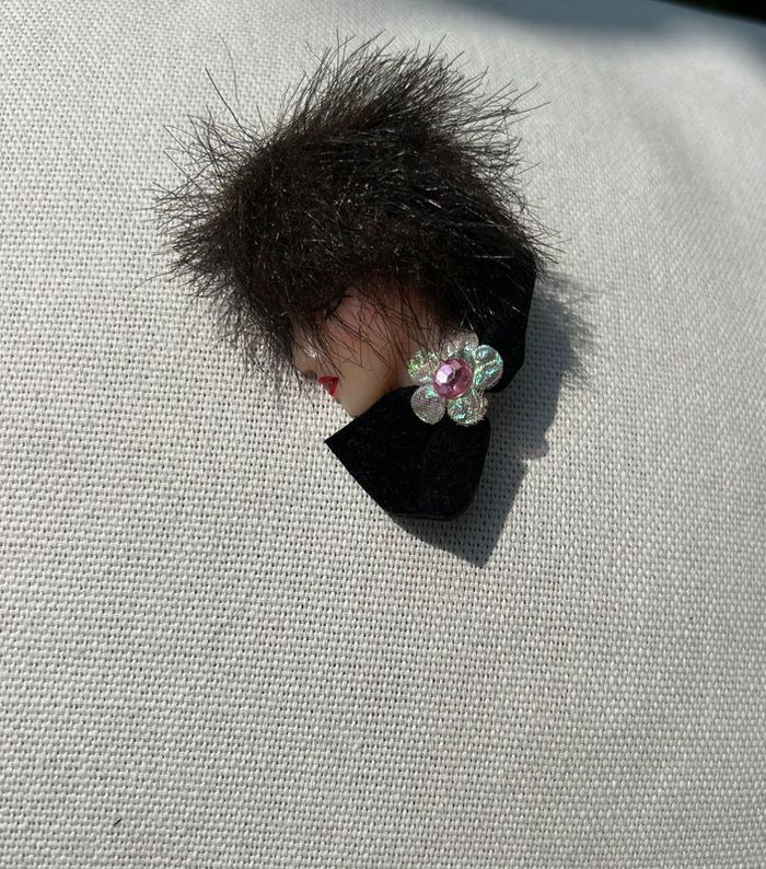 Broche vintage représentant le visage d’une femme coiffée d’un chapeau Vintage 1980