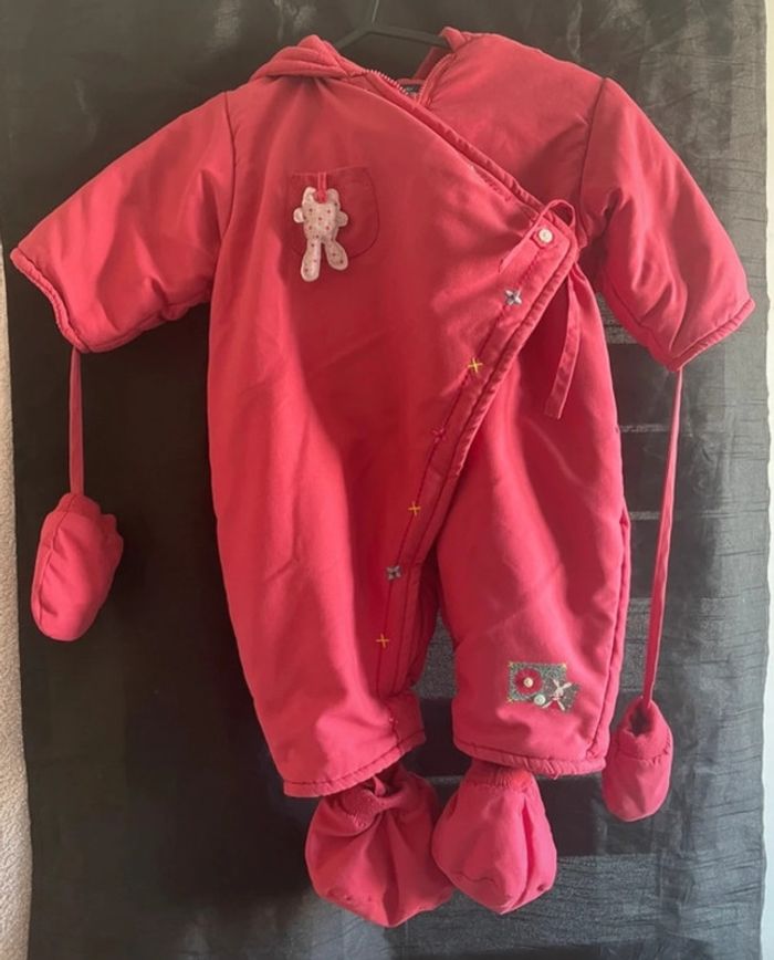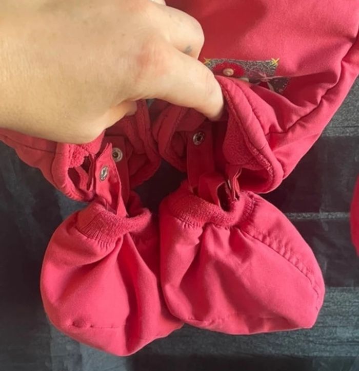 Combinaison très chaude, les moufles peuvent être enlevé. Elles sont taché voir photo. Les chaussons peuvent s’enlever reste en bon état malgré les taches sur les moufles. #combinaison #fille #sergentmajor #rose #chaud #hiver #jklmnfamily #jklmnfamilyfille6mois
