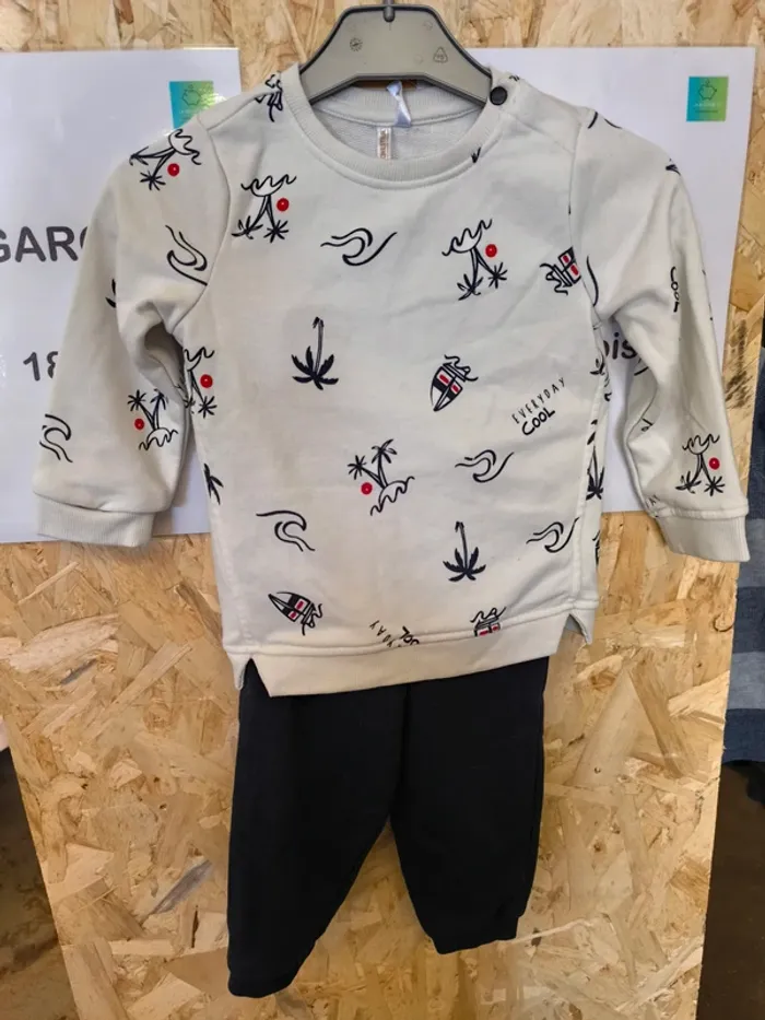 ensemble sweat blanc + jogging marine garçon 18 mois orchestra