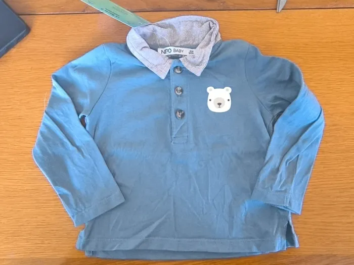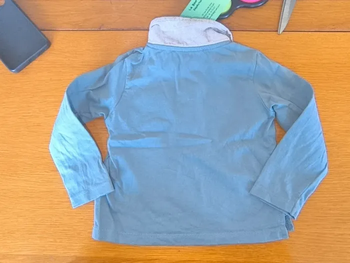 tee-shirt ML bleu col gris garçon 18 mois NPO