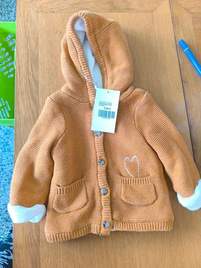 324792 gilet épais à capuche moutarde fille 6 mois orchestra