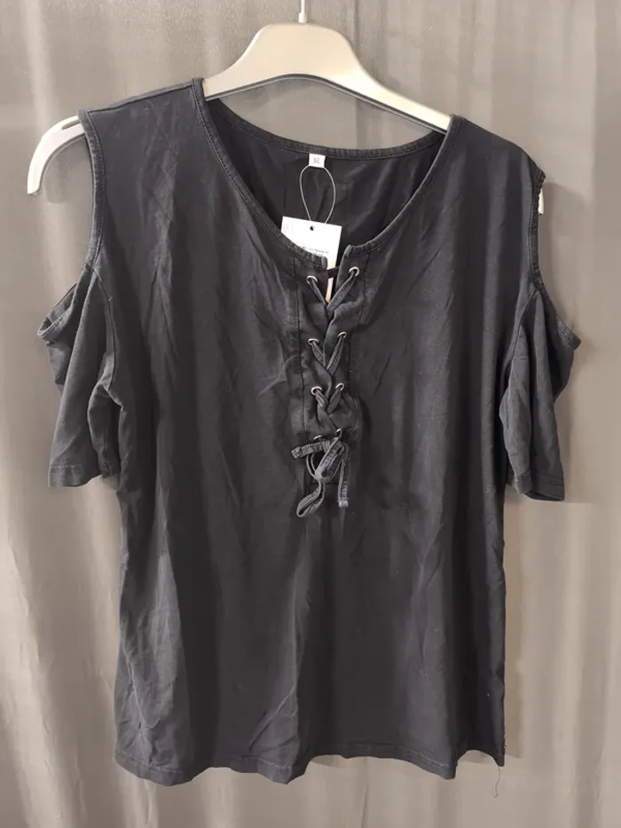 tee-shirt MC noir femme XL avec lacet sur le devant - photo numéro 1