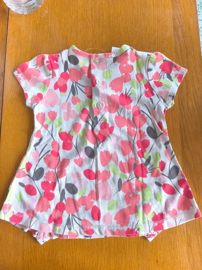 318579 tee-shirt MC beige fleurs fille 12 mois - photo numéro 2