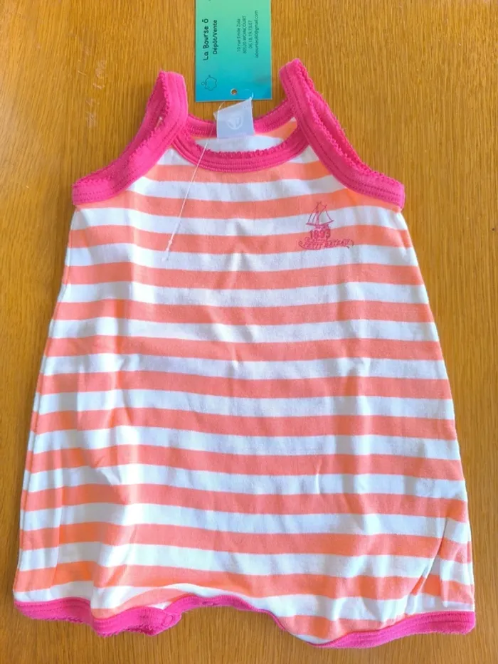 318357 barboteuse blanc rayé rose fille mois petit - photo numéro 1