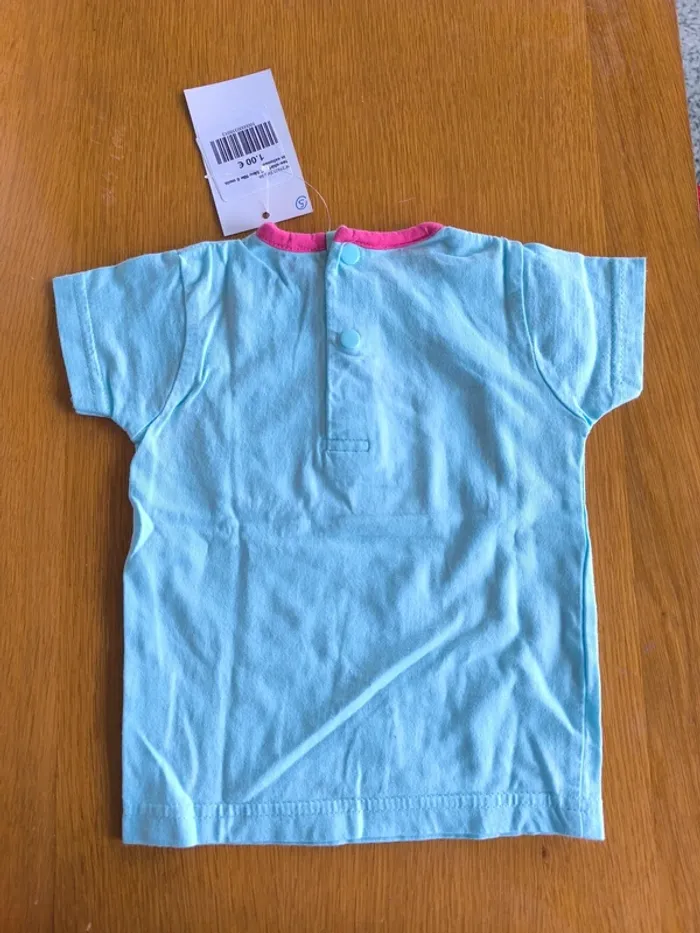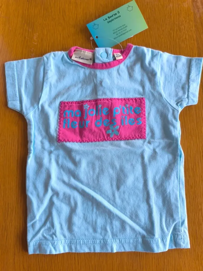 318913 tee-shirt MC bleu fille 6 mois in extenso