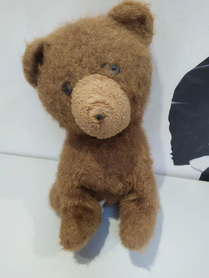 ancien nounours yeux bouton made in France la tête a du mal a tenir droite longueur environ : 26 cm hauteur environ 27 cm #FIGURINESvintageandco