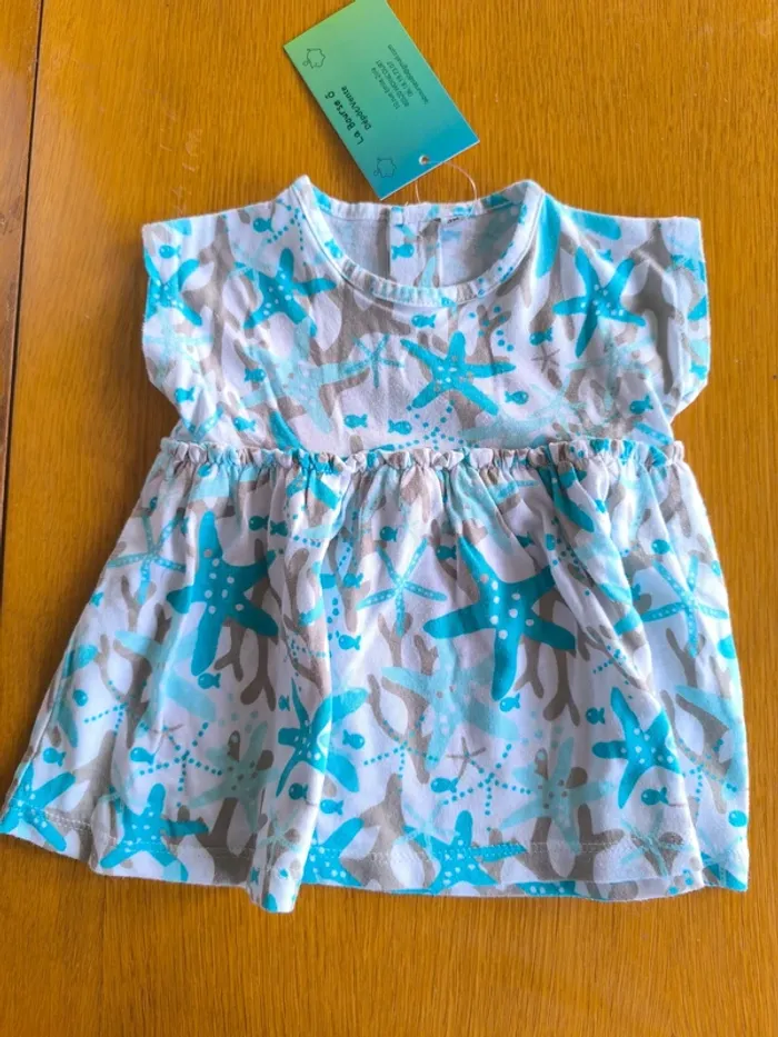 319019 tunique bleue/blanc fille 3 mois - photo numéro 2