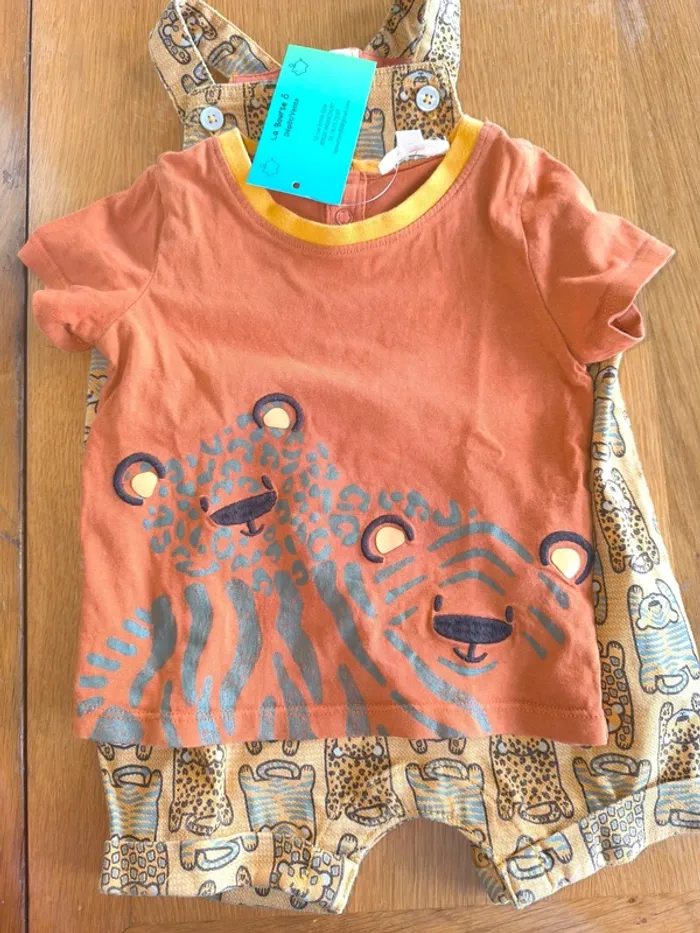 318166 ensemble salopette/tee-shirt garçon 24 mois DPAM