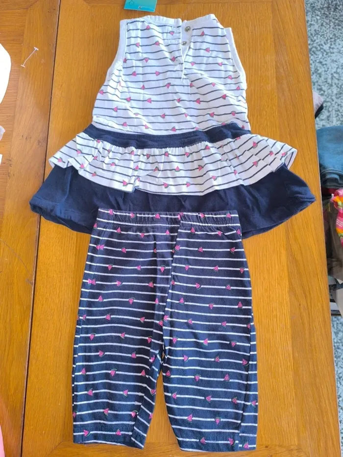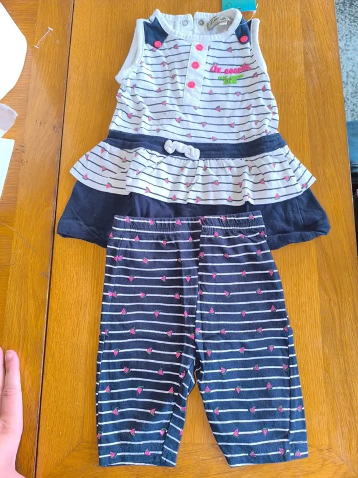 ensemble tunique et legging marine et blanc fille 9 mois Lee Cooper