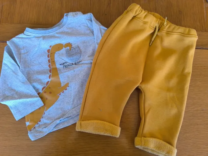 310597 ensemble tee-shirt ML gris + jogging moutarde garçon 12 mois pommette