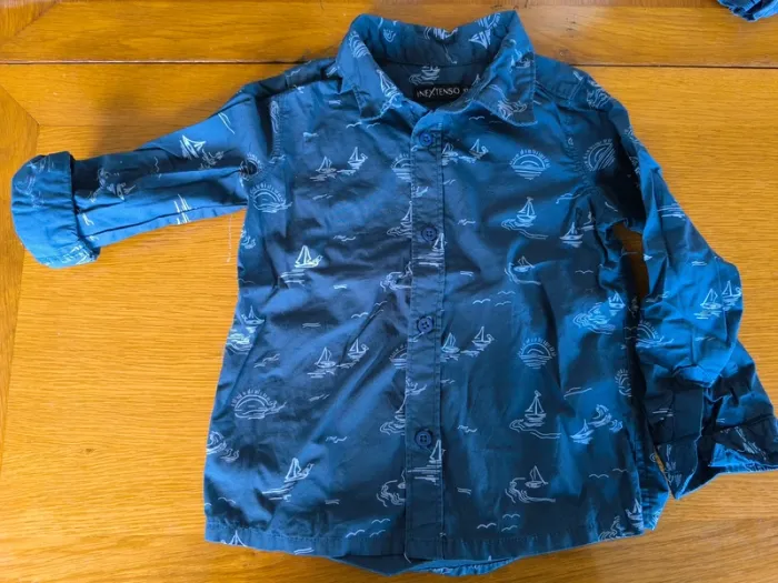 312638 ensemble chemise + short bleu motif bateau - photo numéro 1