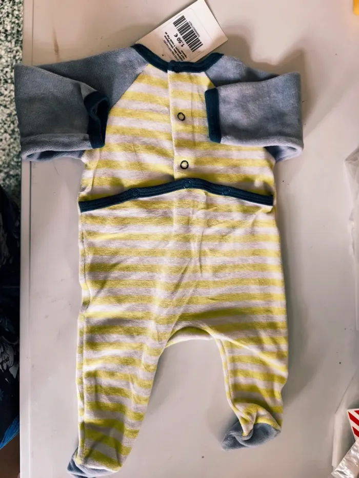 pyjama bleu blanc/jaune rayé garçon 1 mois Pat et ripaton