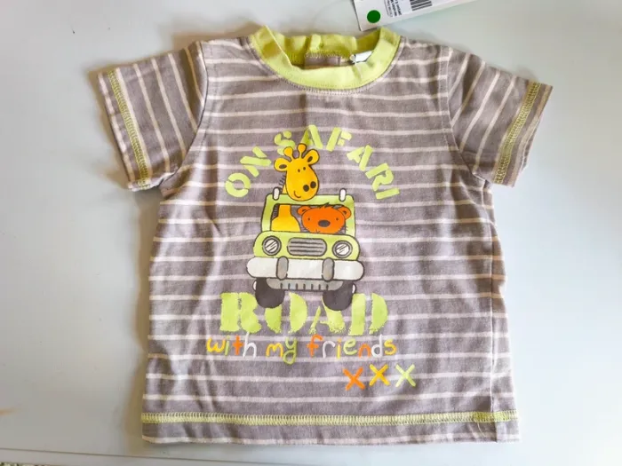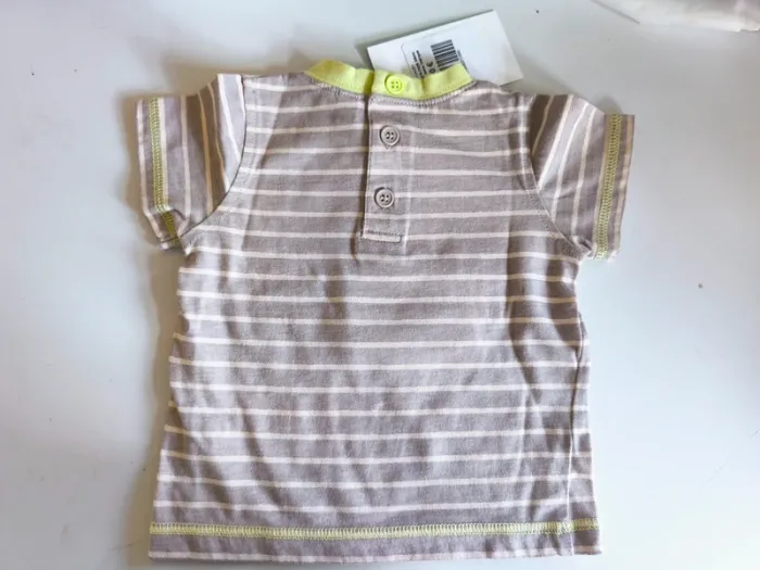 tee-shirt Mc gris rayé blanc garçon 6 mois sans marque