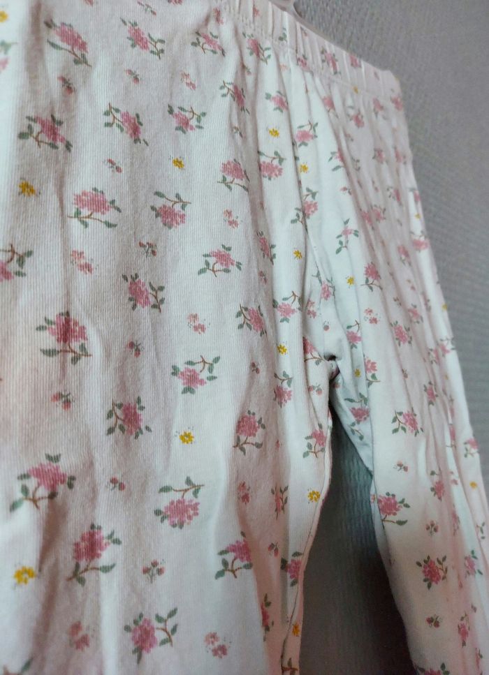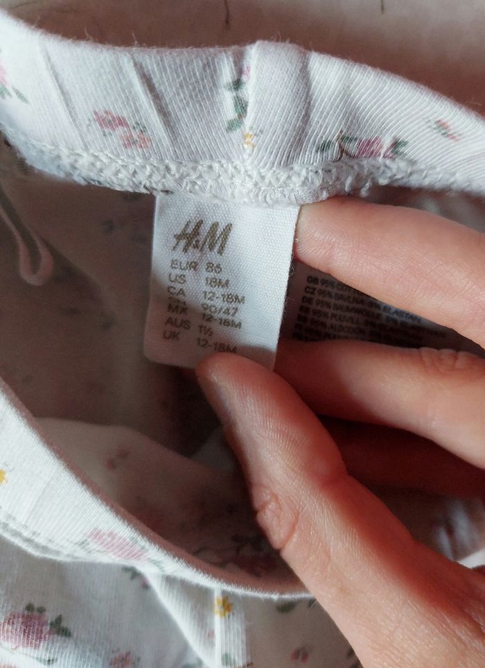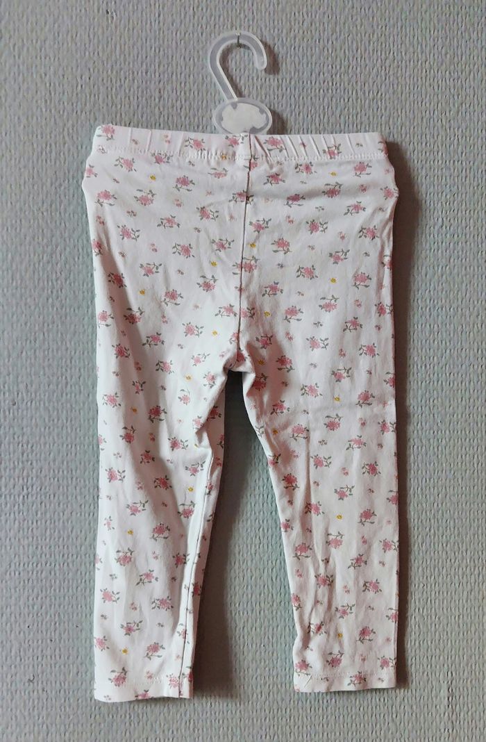 Je vends un ensemble venant de chez H&M, l'ensemble comprends un t-shirt de couleur rose clair avec un dessin sur le devant ainsi qu'un bouton dans le dos pour facilité le passage de la tête - et d'un bas, un legging blanc à motifs (des fleurs). Taille 86 (18 mois). En très bon état.