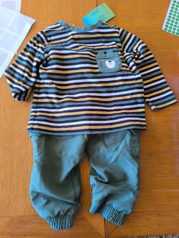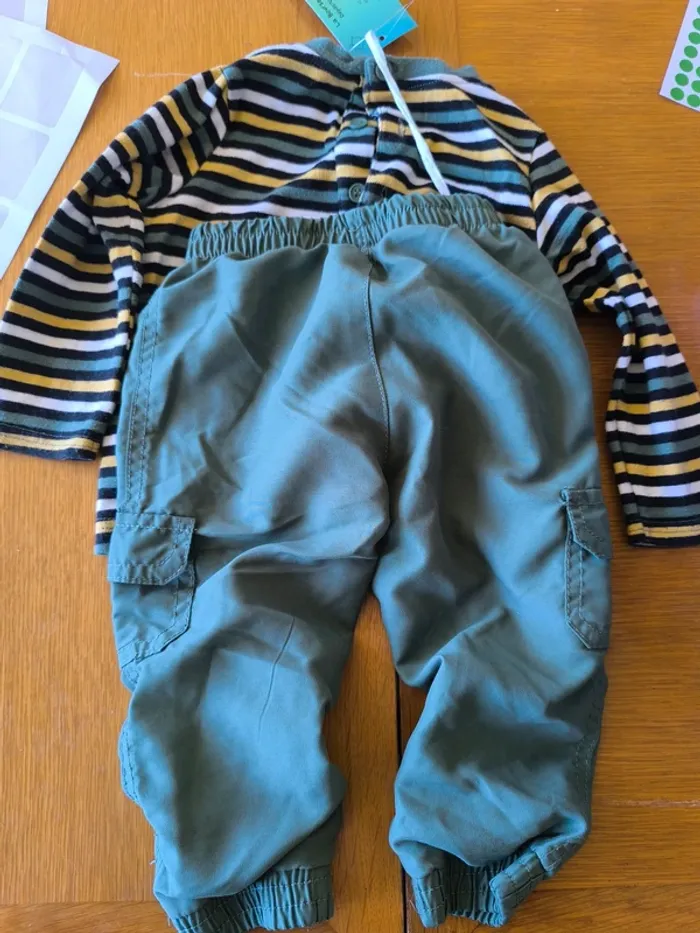 308457 ensemble pull kaki/jaune + pantalon kaki garçon 12 mois sans marque