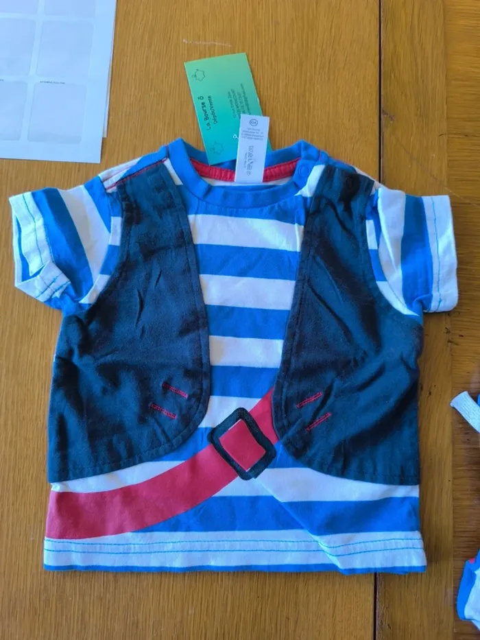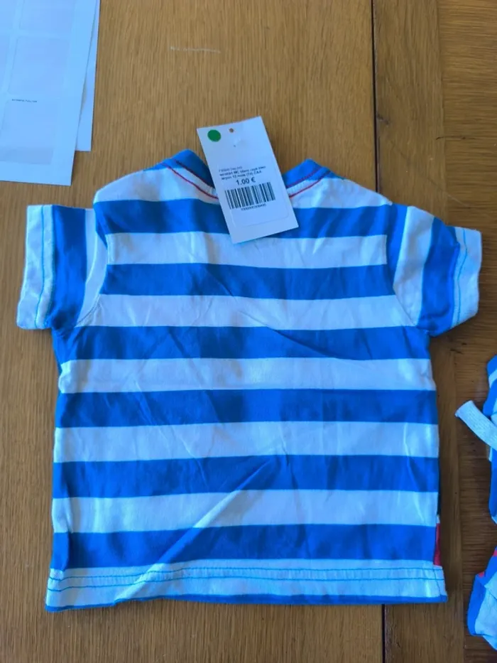 308495 tee-shirt MC blanc rayé bleu garçon 12 mois (74) C&A