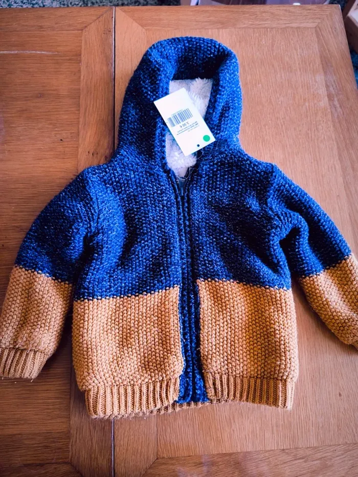 309652 gilet épais marine/moutarde garçon 9/12 mois primark