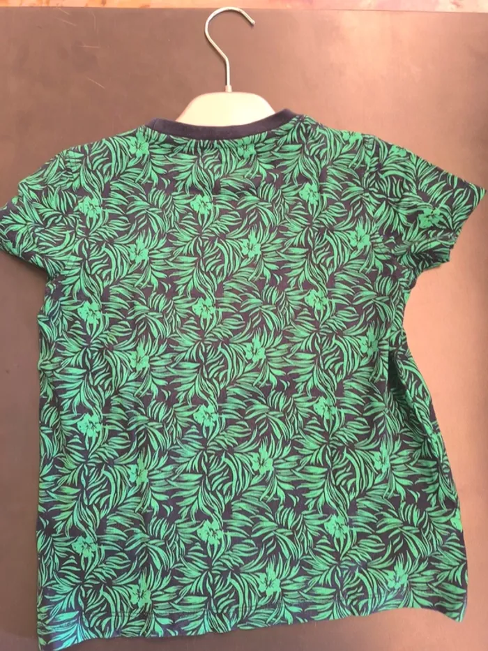 306439 tee shirt MC bleu marine avec motif feuille garçon 8ans in extenso