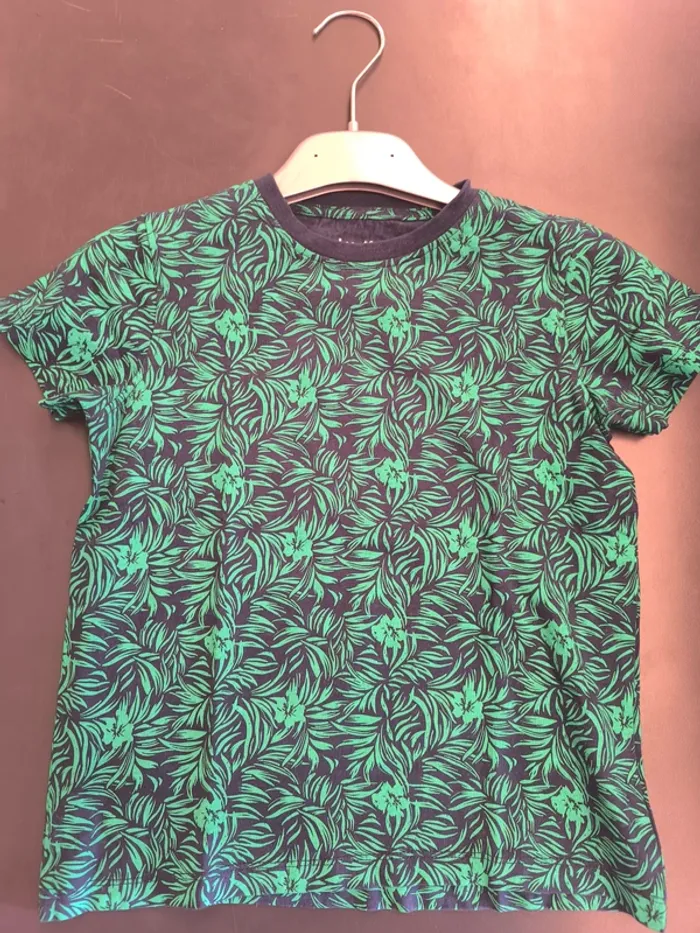 306439 tee shirt MC bleu marine avec motif feuille garçon 8ans in extenso - photo numéro 1