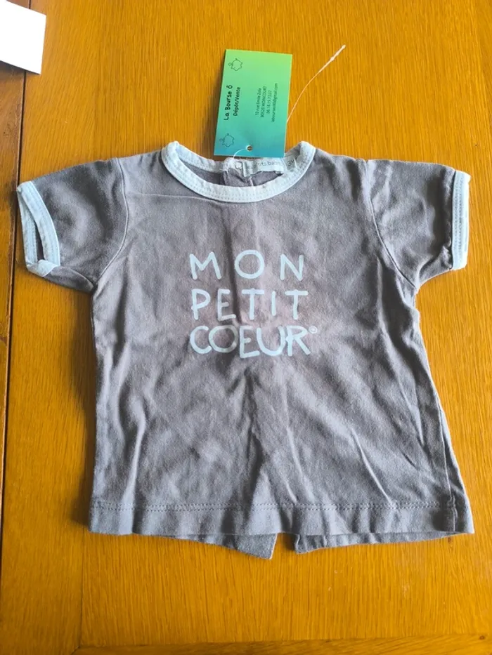 306507 tee-shirt MC gris garçon 3 mois les p'tits babies