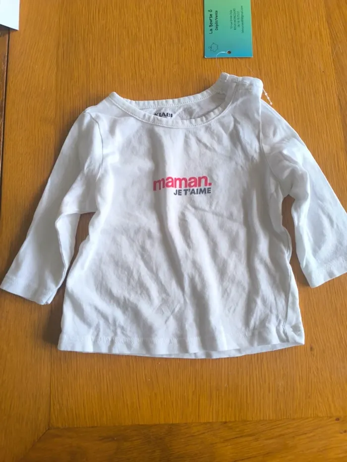 306330 tee-shirt ML Blanc garçon 3 mois "maman je t'aime" - photo numéro 1