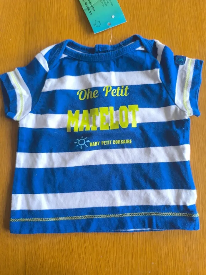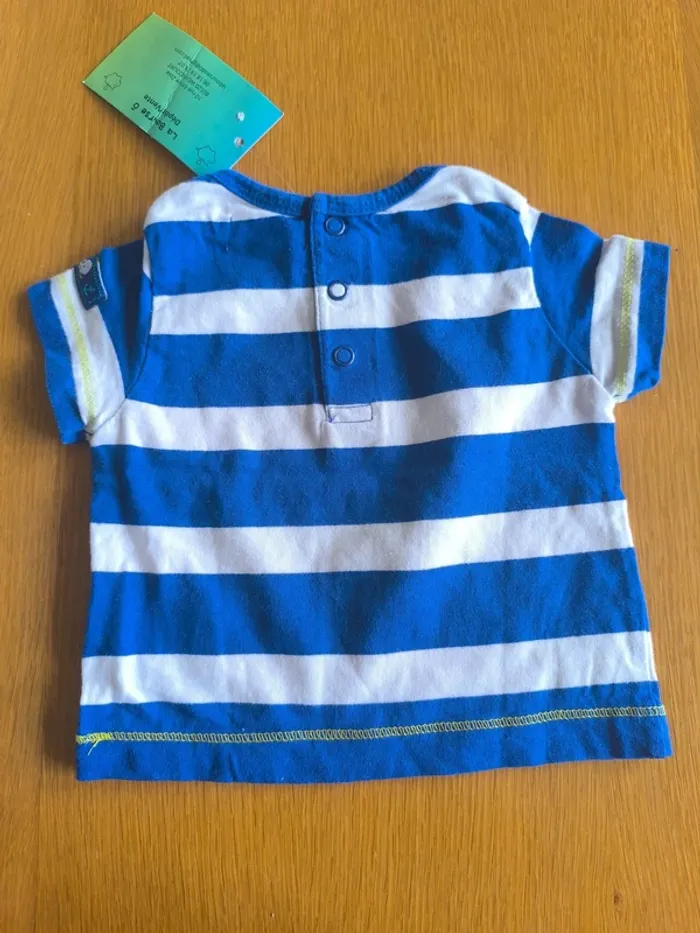 306477 tee-shirt Mc blanc/bleu rayé garçon 3 mois tissaia