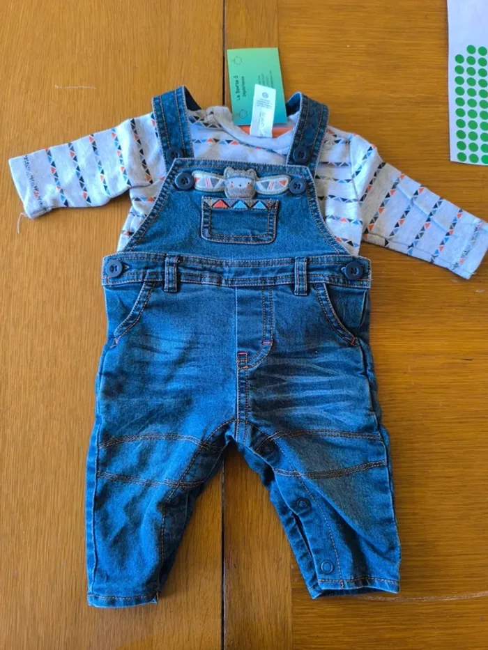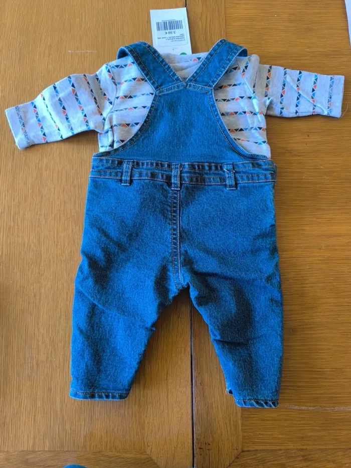 309782 ensemble pull gris + salopette garçon 1 mois (56) C&A