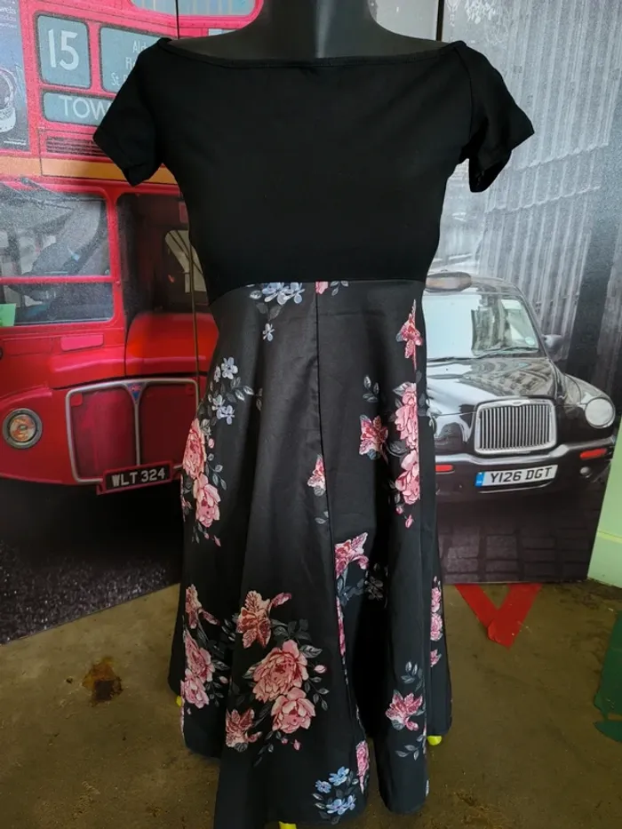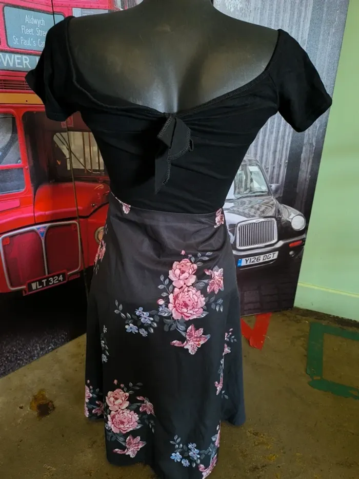 Robe noire avec motifs fleurs pour femme en taille S. Très bon état