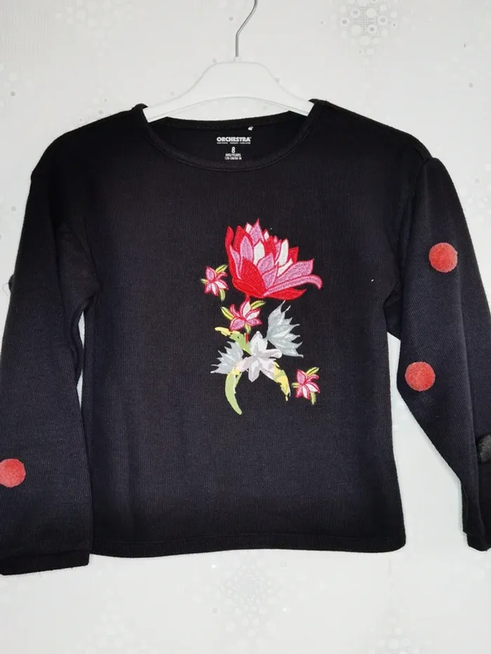 Pull noir motif fleur pour fille de 8 ans #labourseo80_fille8ans