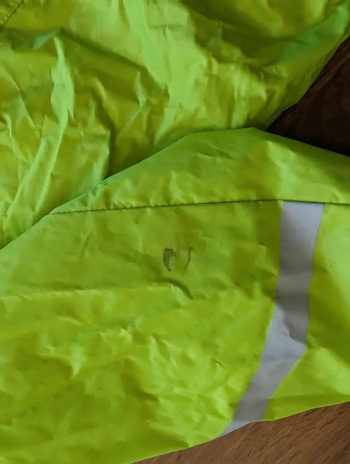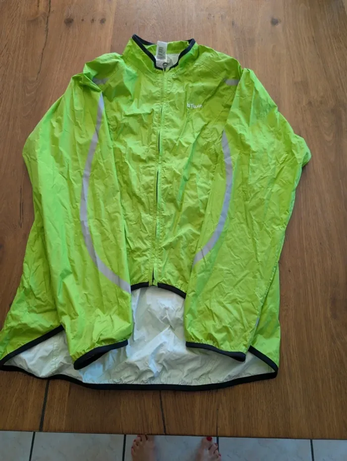 Vêtement coupe-pluie pour vélo, marque B'twin (Decathlon), taille L. En parfait état à part de petites taches au bout des manches.