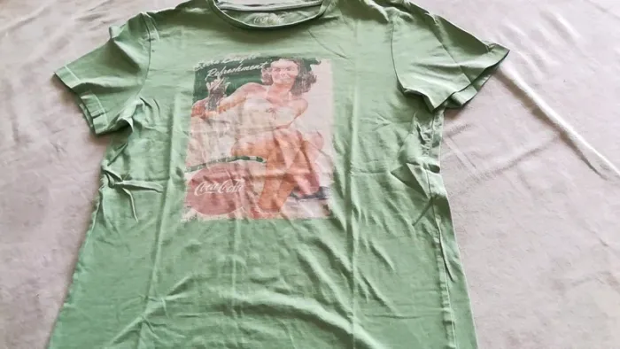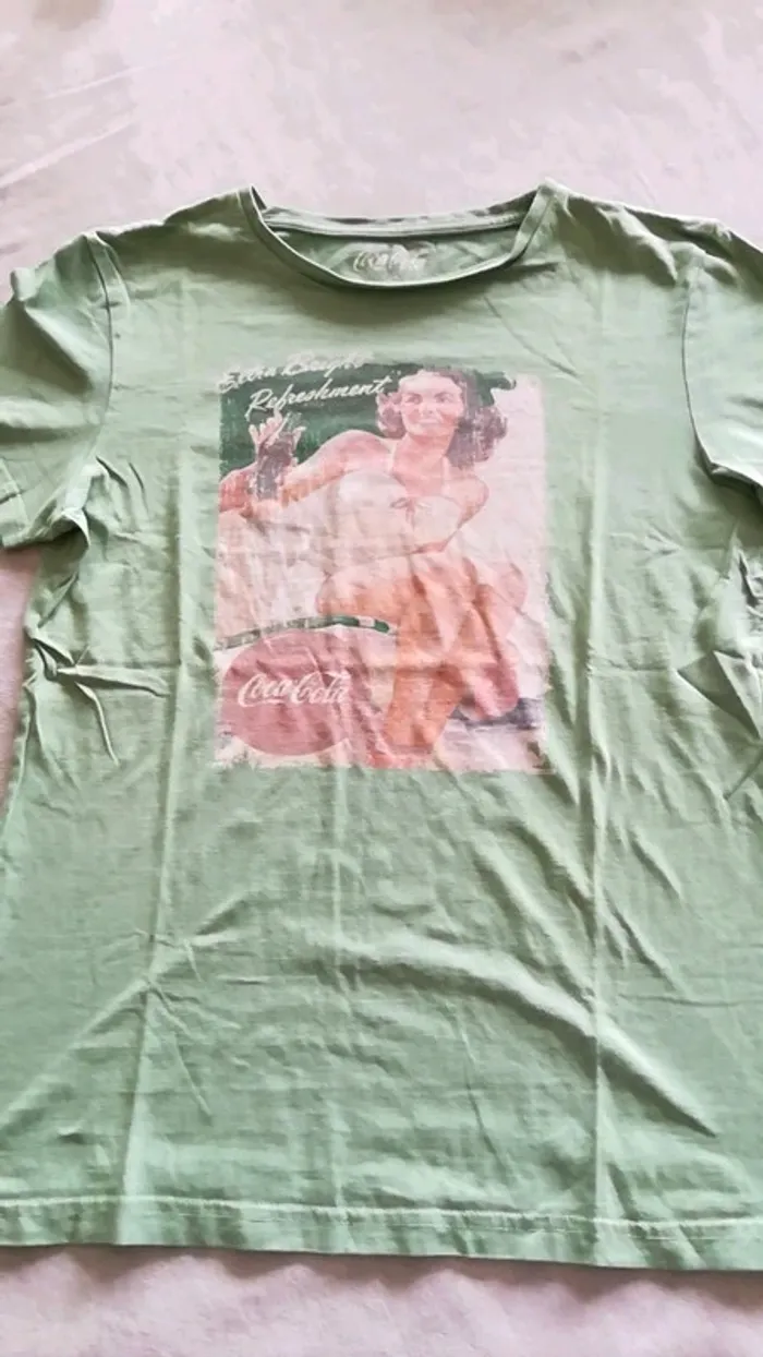 T-shirt vert clair Coca-Cola rétro taille S. L'étiquette intérieure a été coupée.