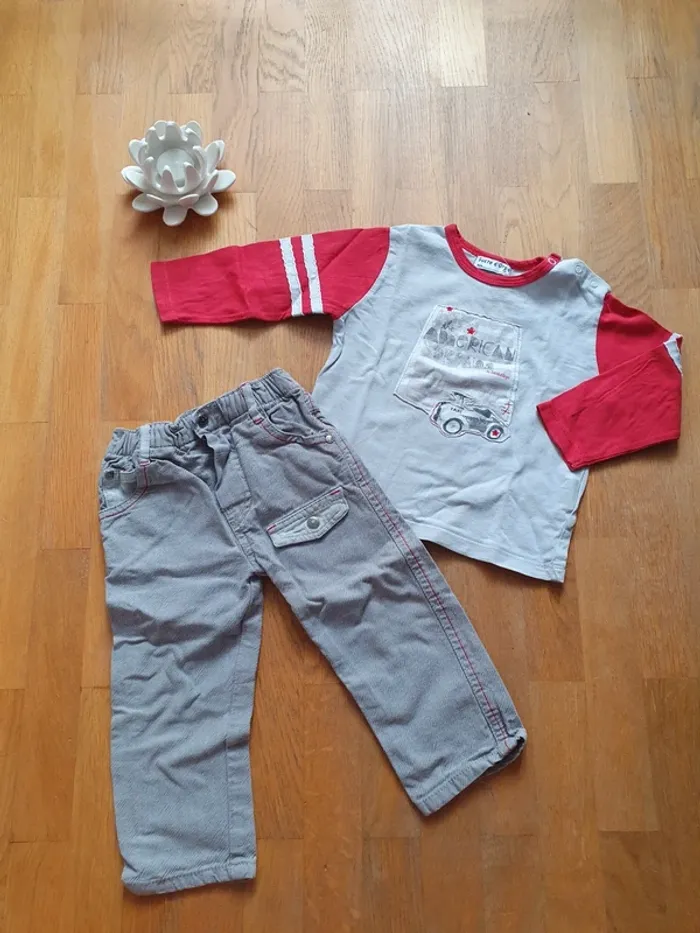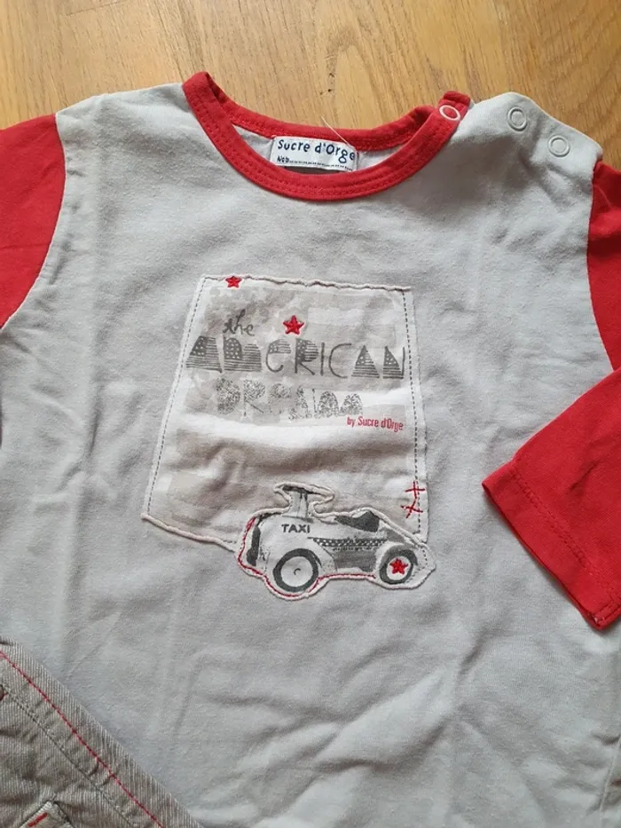 Ensemble 2 pièces avec tee shirt manches longues et jean gris Taille 18 mois Marque sucre d'orge Très bon état #dayday_13garcon18mois