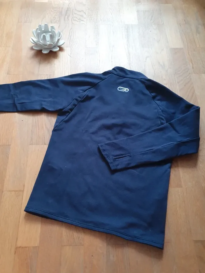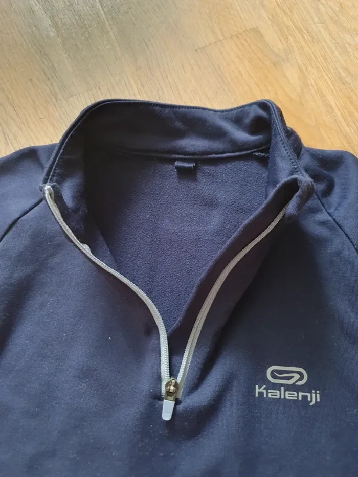 Tee shirt manches longues bleu marine Pour faire de la course à pieds ou athlétisme en hiver Zip au niveau du cou Trou pour le pouce Taille 5/6 ans Marque décathlon kalenji Très bon état (petites bouloches) #dayday_13fille5ans #dayday_13fille6ans