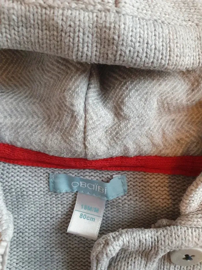 Gilet zippé à capuche gris Taille 18 mois Marque obaibi Très bon état #dayday_13garcon18mois