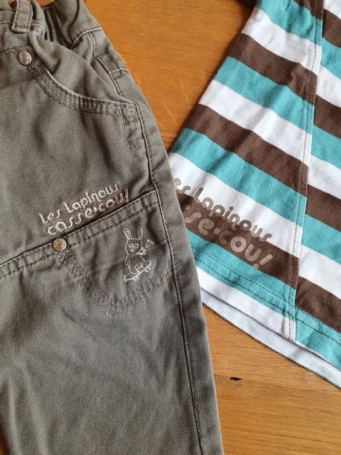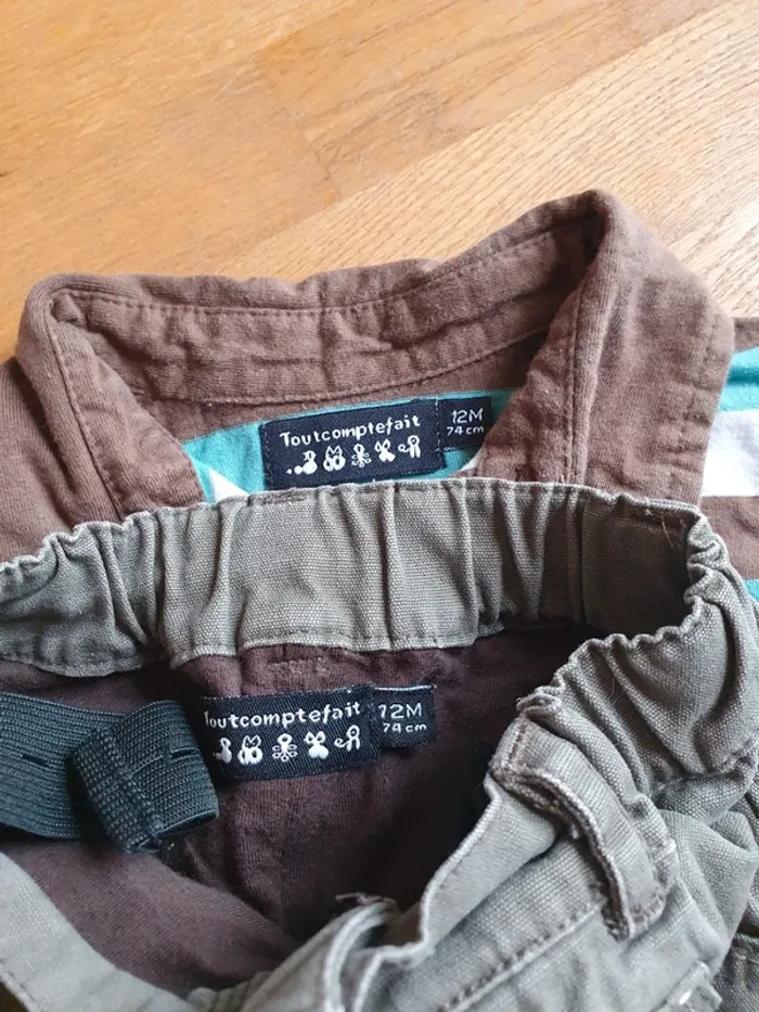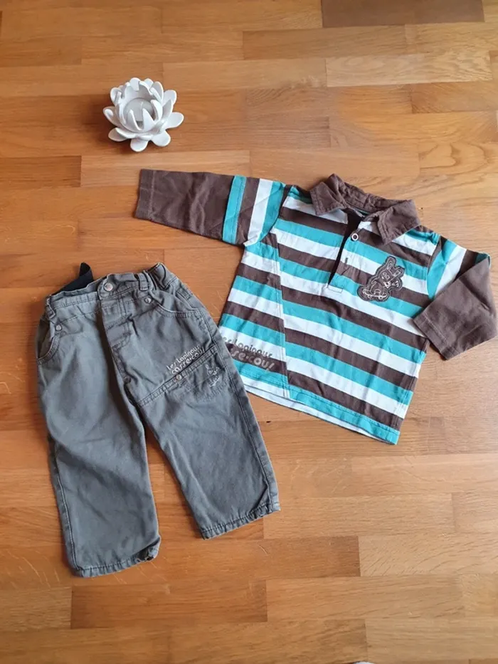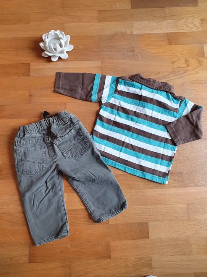 Ensemble 2 pièces comprenant un tee shirt manches longues a col et un pantalon Taille 12 mois Marque tout compte fait Très bon état #dayday_13garcon12mois