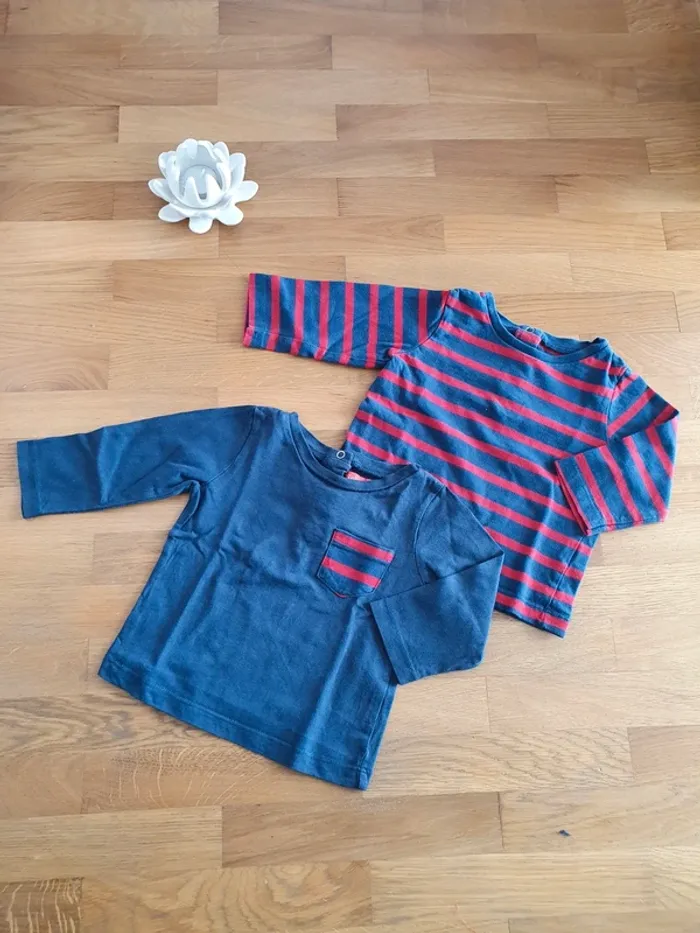 Lot de 2 tee shirts manches longues Taille 12 mois Marque tissaia Très bon état #dayday_13garcon12mois