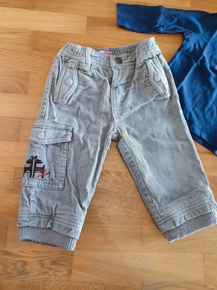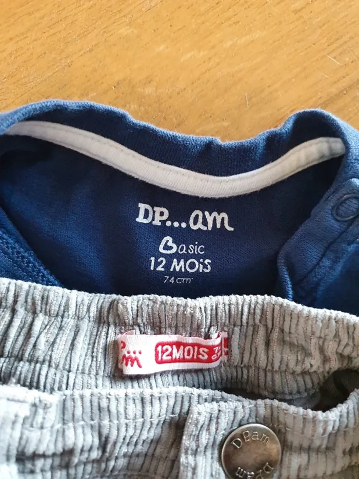 Ensemble 2 pièces comprenant un tee shirt manches longues bleu et un pantalon velour gris Taille 12 mois Marque dpam Très bon état #dayday_13garcon12mois
