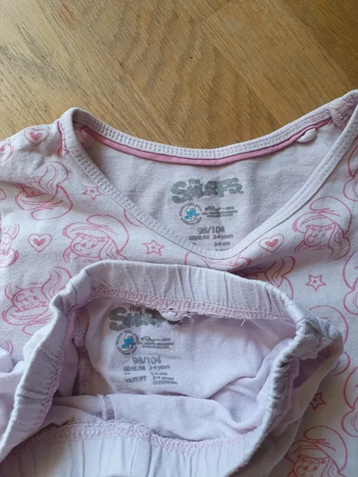 Pyjama rose 2 pièces tee shirt manches courtes et short Taille 98/104 cm Marque the Smurfs Bon etat (quelques taches) #dayday_13fille3ans #dayday_13fille4ans
