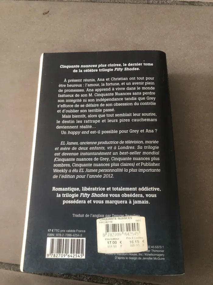 Je vend ce livre cinquante nuances plus claires si ça intéresse quelqu’un. Nouveaux ! A partir de 20€ d’achat vous aurez le droit soit une surprise ou soit un article gratuit du même type dans vos colis. 20€ d’achat = 1 articles gratuits 40€ d’achat = 2 articles gratuits 60€ d’achat = 3 articles gratuits Promo - 30% des 2 articles - 40% des 3 articles - 50% des 5 articles Alors profite s’en 😉👍🏻