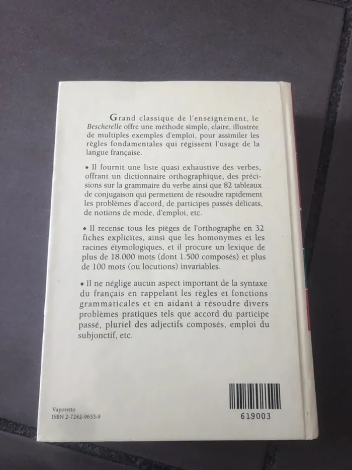Je vend ce dictionnaire Bescherelle la conjugaison l’orthographe la grammaire si ça intéresse quelqu’un. Nouveaux ! A partir de 20€ d’achat vous aurez le droit soit une surprise ou soit un article gratuit du même type dans vos colis. 20€ d’achat = 1 articles gratuits 40€ d’achat = 2 articles gratuits 60€ d’achat = 3 articles gratuits Promo - 30% des 2 articles - 40% des 3 articles - 50% des 5 articles Alors profite s’en 😉👍🏻