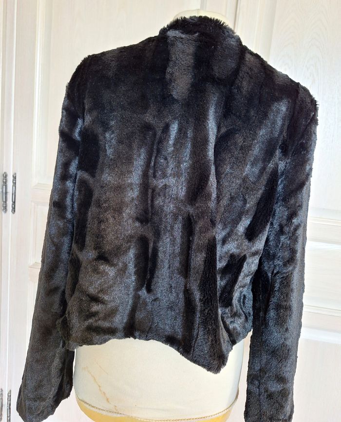 VESTE BOLERO EN FAUSSE FOURRURE NOIRE TRES DOUCE AU TOUCHER TAILLE 42 100% POLYESTER NEUVE SANS ETIQUETTE !
