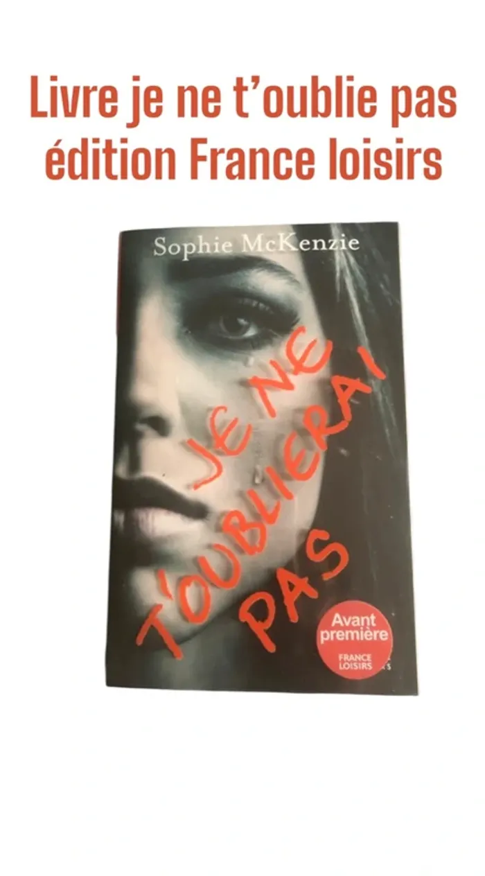 Je vend ce livre je ne t’oublie pas édition France loisirs si ça intéresse quelqu’un. Nouveaux ! A partir de 20€ d’achat vous aurez le droit soit une surprise ou soit un article gratuit du même type dans vos colis. 20€ d’achat = 1 articles gratuits 40€ d’achat = 2 articles gratuits 60€ d’achat = 3 articles gratuits Promo - 30% des 2 articles - 40% des 3 articles - 50% des 5 articles Alors profite s’en 😉👍🏻