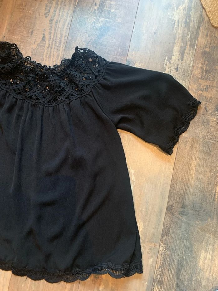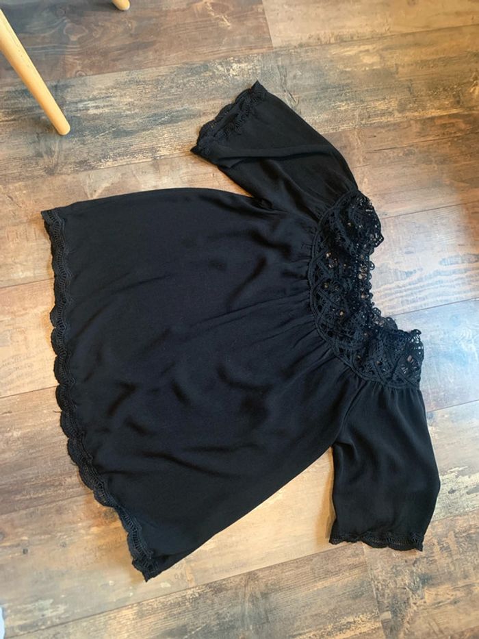 Blouse noire col dentelle 3/4 manches - photo numéro 1