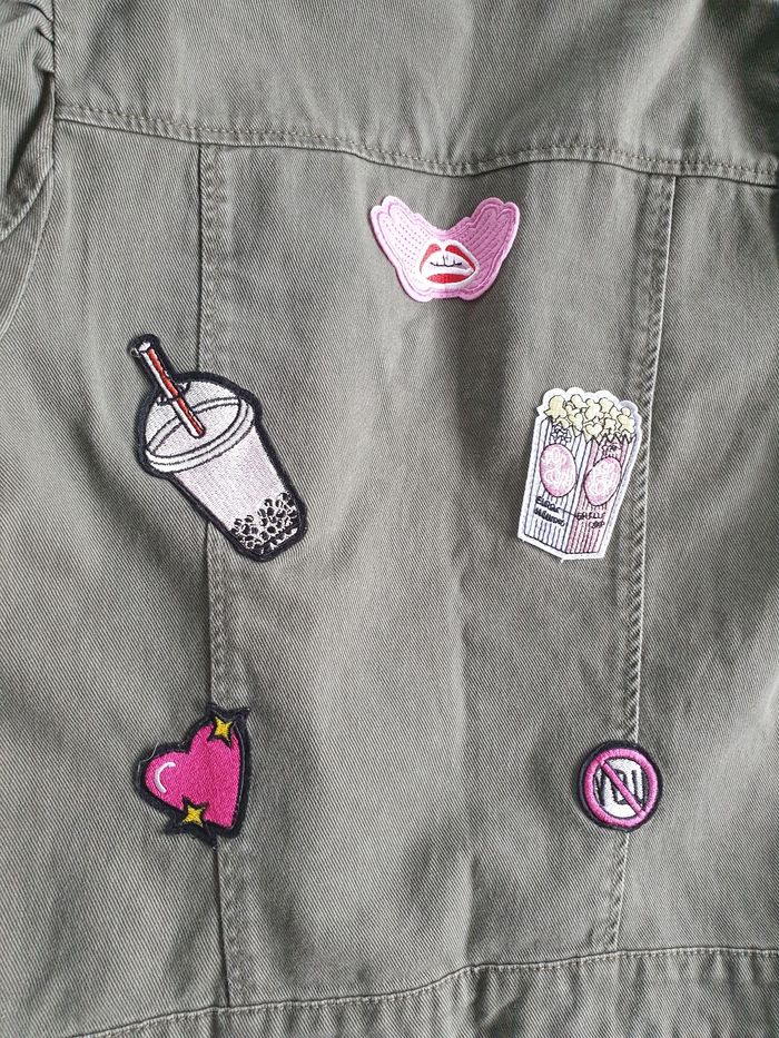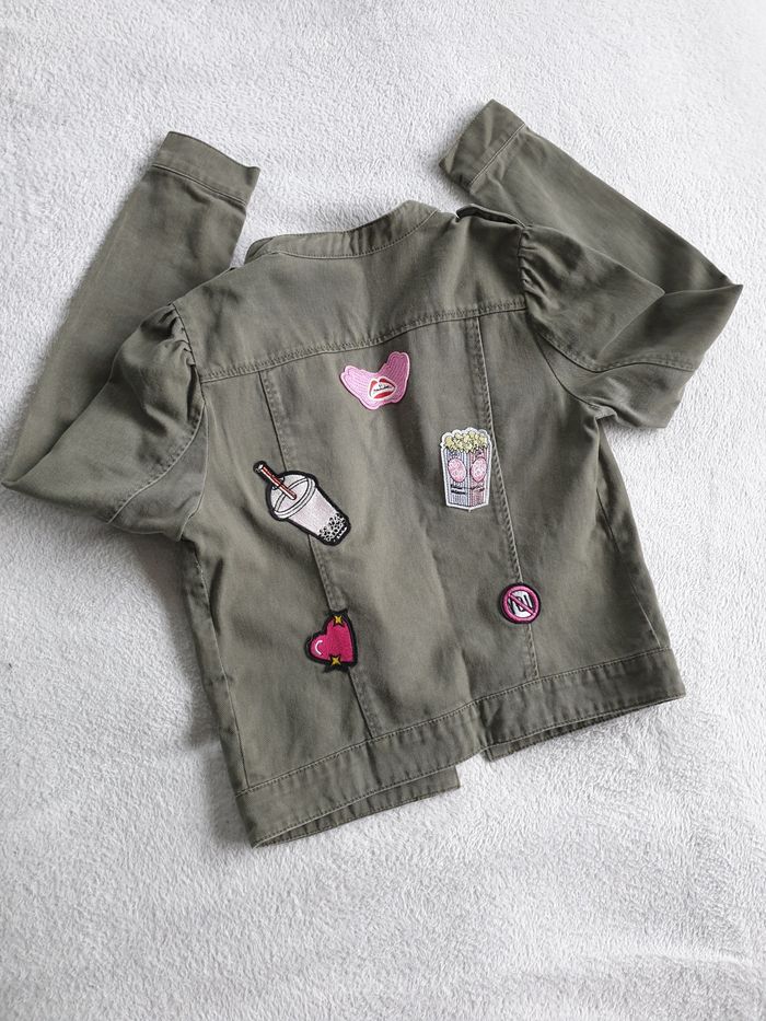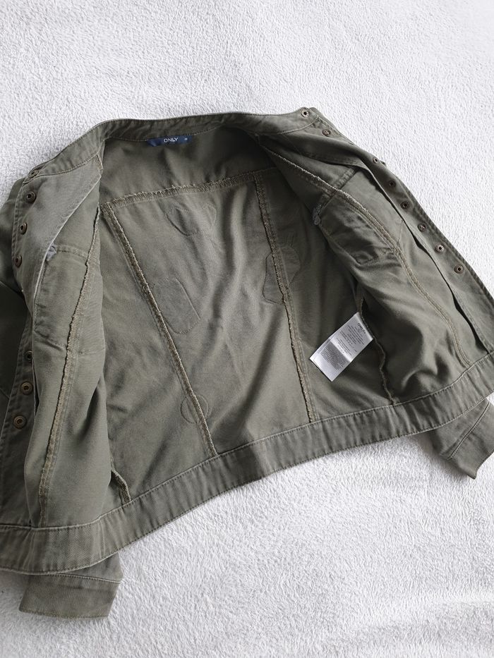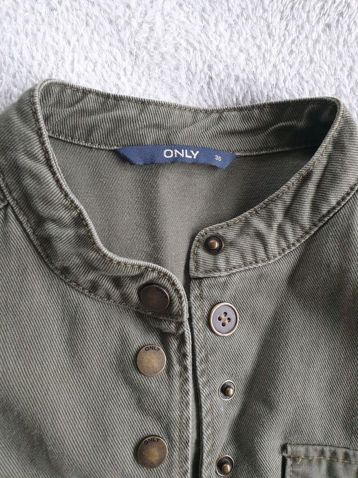 Veste Only kakie. Taille S. 2 poches sur le devant. Decos dans le dos et sur le bras.