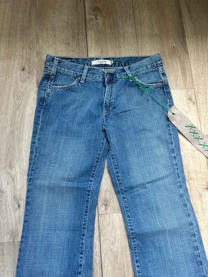 Bonjour, je vous propose ce magnifique jean neuf original jamais porté de chez School Rag avec sa coupe évasée taille 28 est une taille intermédiaire du 36 français. 100 % coton.