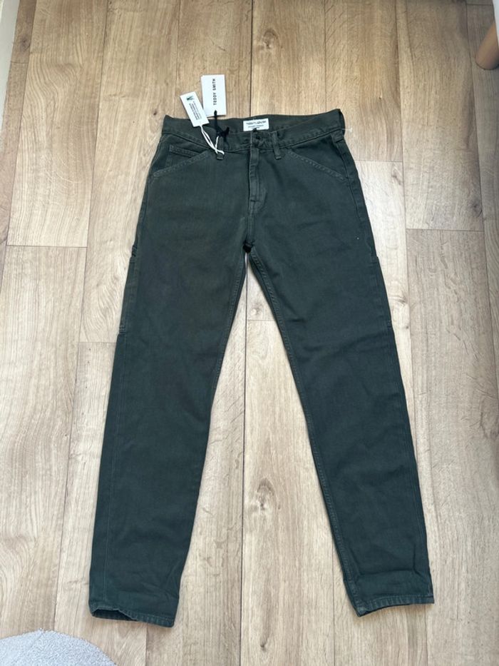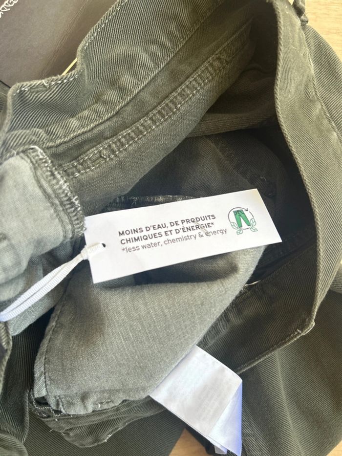 Bonjour, je vous propose ce magnifique Jean belle couleur neuf jamais porté taille 27 correspond à une taille 34 française, plus de boutons, de braguette, à remplacer fabrication éco responsable.